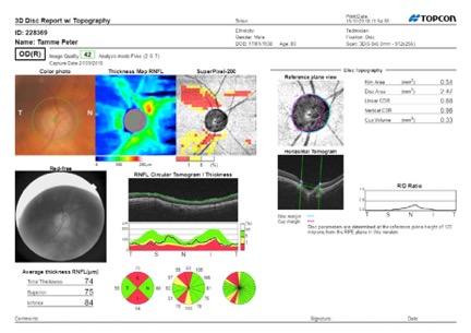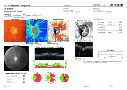 Diese Daten sind von Untersuchung zu Untersuchung reproduzierbar messbar, so dass zeitliche Verläufe Hinweise über ein Fortschreiten oder Stagnieren und damit über die Effektivität der Therapieeinstellung liefern können. Es entspricht dem heutigen Goldstandard der Glaukomfrüherkennung sowie -verlaufsdokumentation.